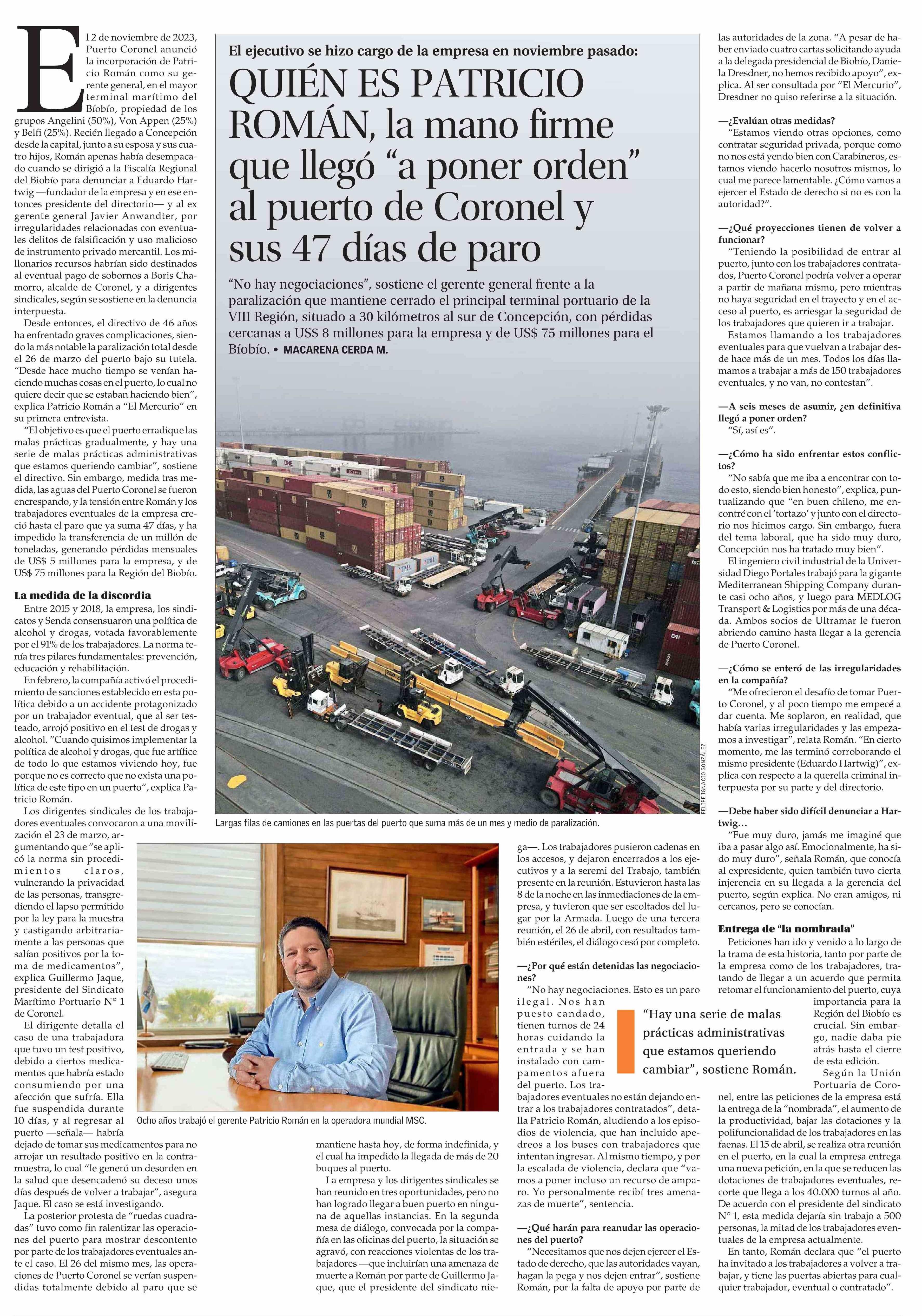 Entrevista a egresado de Ingeniería Industrial UDP: Quién es Patricio Román, la mano firme que llegó “a poner orden” al puerto de Coronel y sus 47 días de paro